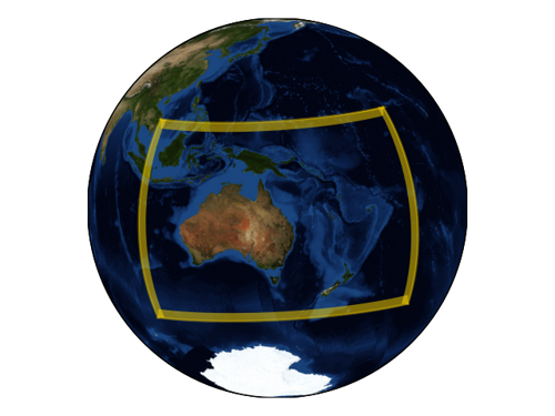 This region includes the whole of Australia and New Zealand at 50 km resolution.