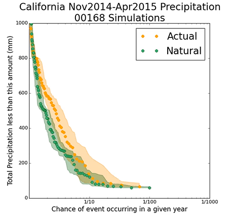 That is, climate change slightly increased the probability of extreme rainfall occurring that winter.